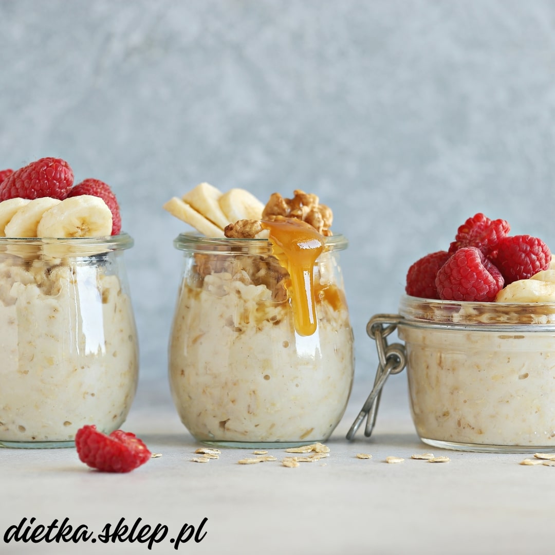 Nocna owsianka o smaku słonego karmelu, z bananem i masłem orzechowym Wyobraź sobie poranek, w którym nie musisz